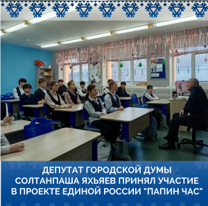 В преддверии Дня защитника Отечества в рамках проекта "Моя карьера с Единой Россией" во второй школе Покачей стартовал проект "Папин час". Это инициатива, направленная на укрепление связи между детьми и их отцами, а также на формирование уважения к мужским профессиям и общественной деятельности.