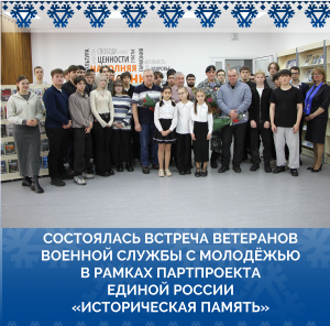 По инициативе партии «Единая Россия» в городской библиотеке прошла встреча ветеранов военной службы с молодёжью в рамках партпроекта «Историческая память».