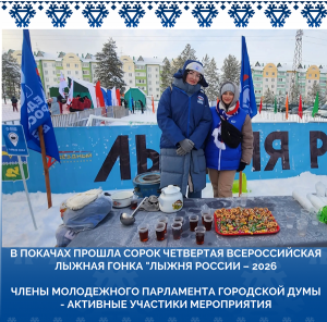 На площадке лыжной базы «Парк активного отдыха» состоялось масштабное спортивное событие – «Лыжня России – 2026». В этом году впервые прошли два отдельных забега: для профессиональных спортсменов и массовый забег для всех любителей лыжного спорта.Члены Молодежного парламента городской Думы приняли активное участие в мероприятии.